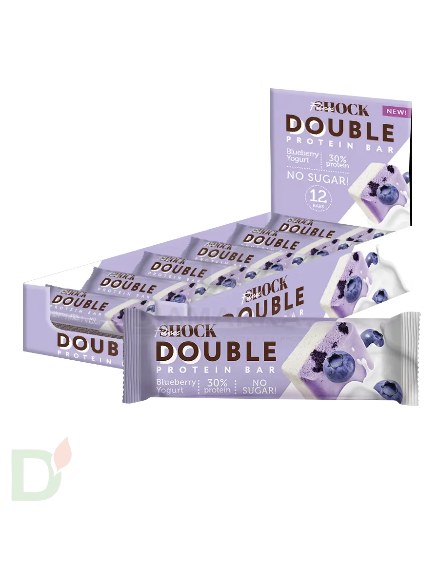 <h2>Протеиновые десерты - десерты 21 века</h2> Есть сладкое и при этом без вреда для здоровья? В 21 веке это реальность. Еще несколько лет назад протеиновые десерты считались едой исключительно для спортсменов. Сейчас же их выбирают многие: люди с диабетом, те кто следит за своим здоровьем и питанием, придерживается диеты, хочет снизить потребление сахара<br> <br> Протеиновая вкусняшка - это идеальный перекус после тренировки, на прогулке, в дороге, в школе или на работе и тд. Его удобно брать с собой. Но главное преимущество батончиков и печений на протеине - невероятная сытость! Например, батончика весом в 40 грамм вполне достаточно, чтобы сбить голод на несколько часов.<br> <br> <h3>Вкусные десерты с пользой для здоровья</h3> О какой пользе речь?<br> <ul> <li>продукция богата протеином. Белок - это основной строительный материал для организма. Мы - дети современности - часто не добираем суточную норму белка. Протеиновые сладости способны этот дефицит восполнить</li> <li> в составе нет сахара. Следовательно, отсутствуют свойственные сахару побочные эффекты</li> <li> содержат пищевые волокна, которые необходимы для нормального функционирования ЖКТ</li> </ul> Батончики линейки Double protein bar содержат ВДВОЕ больше протеина. Значит, вдвое больше пользы и дольше чувство сытости. При этом в них снижено содержание жиров, а следовательно и калорий!<br> <br> Вес батончика 40 грамм<br> <h3>Состав батончика Double protein bar Черничный йогурт</h3> Cмесь белков (концентрат молочного белка, концентрат сывороточного белка), полидекстроза (пищевые волокна), вода питьевая, изомальтоолигосахарид (пищевые волокна), черника, масло кокосовое.<br> <br> Содержит менее 2%: глицерин (агент влагоудерживающий), сорбит (агент влагоудерживающий), лимонная кислота (регулятор кислотности), соль гималайская розовая, аскорбиновая кислота (регулятор кислотности), сорбат калия (консервант), соевый лецитин (эмульгатор), ароматизатор натуральный «Черника», ароматизатор натуральный «Ванилин», стевиозид (подсластитель).<br> <h4>Пищевая и энергетическая ценность на 1 батончик</h4> б - 12<br> ж - 1,6<br> у - 3,2<br> пищевые волокна - 15,2<br> 109 ккал