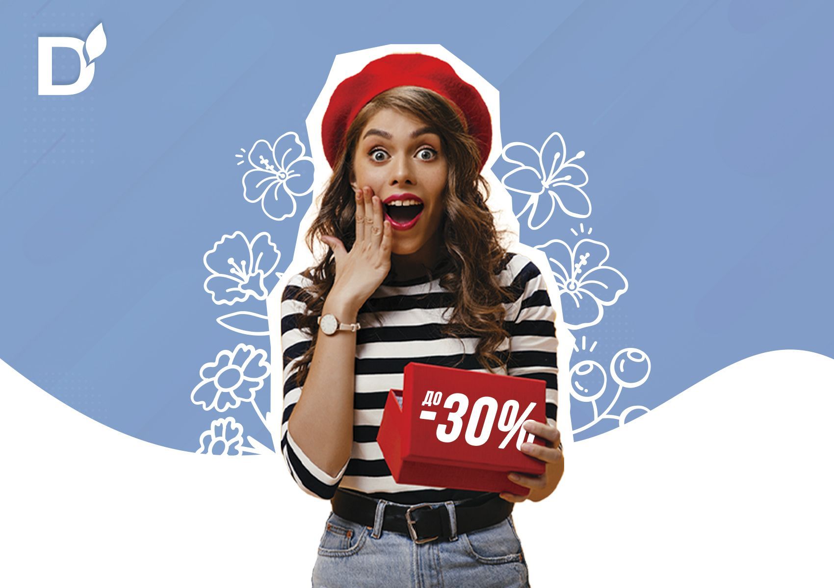 В честь Международного Женского Дня мы подготовили для вас сюрприз: скидки до 30% на товары из раздела "СКИДКИ ДЛЯ САМЫХ КРАСИВЫХ". В акционном ассортименте представлены: