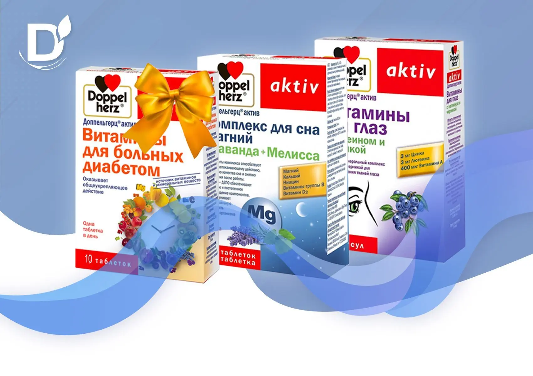При покупке двух упаковок ЛЮБЫХ витаминов Доппельгерц® вы получите гарантированный подарок: