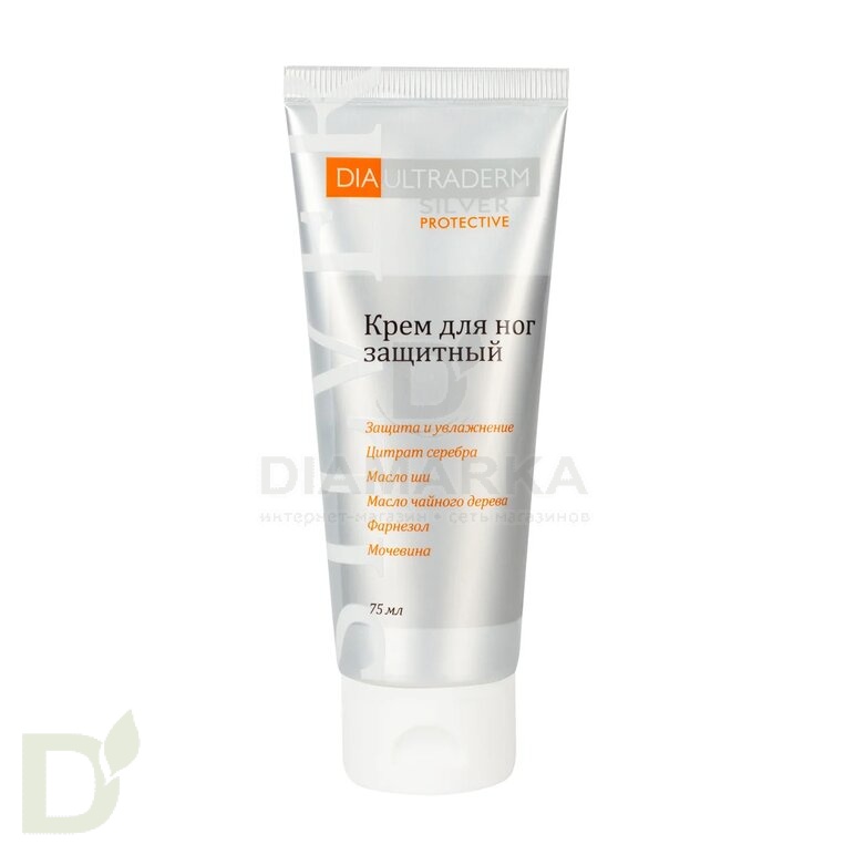 <h2>Идеален для сухой и раздраженной кожи</h2> «Диаультрадерм Сильвер» активно защищает, увлажняет и питает сухую, восприимчивую кожу, способствуя процессу ее восстановления. Предотвращает воспалительные процессы и раздражения, способствует ускорению процессов регенерации.<br> <br> <b>Диаультрадерм Сильвер не оставляет на коже жирного блеска и быстро впитывается.</b><br> <h2>Активные компоненты крема Диаультрадерм Сильвер</h2> <b>Нитрат серебра (азотнокислое серебро)</b> в его активной ионной форме проявляет мощный бактерицидный и фунгицидный эффект. Уничтожает болезнетворные микроорганизмы, тормозит рост и развитие грибковой инфекции. Способствует восстановлению кожи, улучшает микроциркуляцию и обменные процессы.<br> <br> <b>Масло Ши </b>обладает защитными, регенерирующими, противовоспалительными, смягчающими и увлажняющими свойствами. Масло Ши улучшает барьерные свойства кожи, способствуя заживлению микротрещин.<br> <br> <b>Масло чайного дерева</b> является природным антисептиком широкого спектра действия. Оказывает ранозаживляющий эффект на поверхностные слои кожи, уничтожает болезнетворные микроорганизмы в том числе грибковые инфекции.<br> <br> <b>Карбамид.</b> Обеспечивает моментальное увлажнение кожи. Способствует сохранению влаги и питательных веществ в клетках эпидермиса , повышая тем самым защитные свойства кожи.<br> <h2>Способ применения Диаультрадерм Сильвер</h2> <ul> <li>Крем наносится на чистую кожу тонким слоем до полного впитывания.</li> <li> Для профилактики изменений кожи - один раз на ночь;</li> <li> Для устранения незначительных изменений кожи - утром и на ночь;</li> <li> Для устранения выраженных изменений кожи - четыре раза в день.</li> </ul> <br> <b>Для более эффективного результата воспользуйтесь <a href="https://diamarka.com/ukhod_za_kozhey/pemza-kosmeticheskaya-diaultraderm/">пемзой для ног Диаультрадерм.</a></b><br> <br>  Срок годности: 24 месяца с даты изготовления<br> Производитель: ООО "Дельта Фарм", Россия