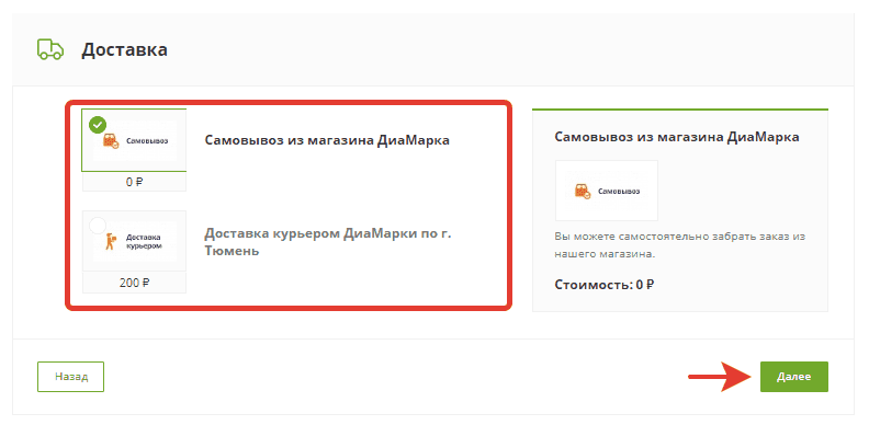 Заполните поля в разделе “Регион доставки” и нажмите “Далее”: