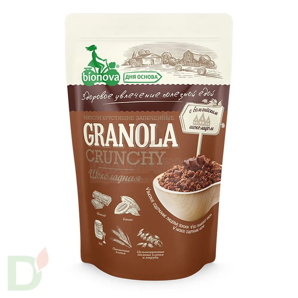 Мюсли хрустящие запеченные "Бионова" шоколадные, 400 гр.