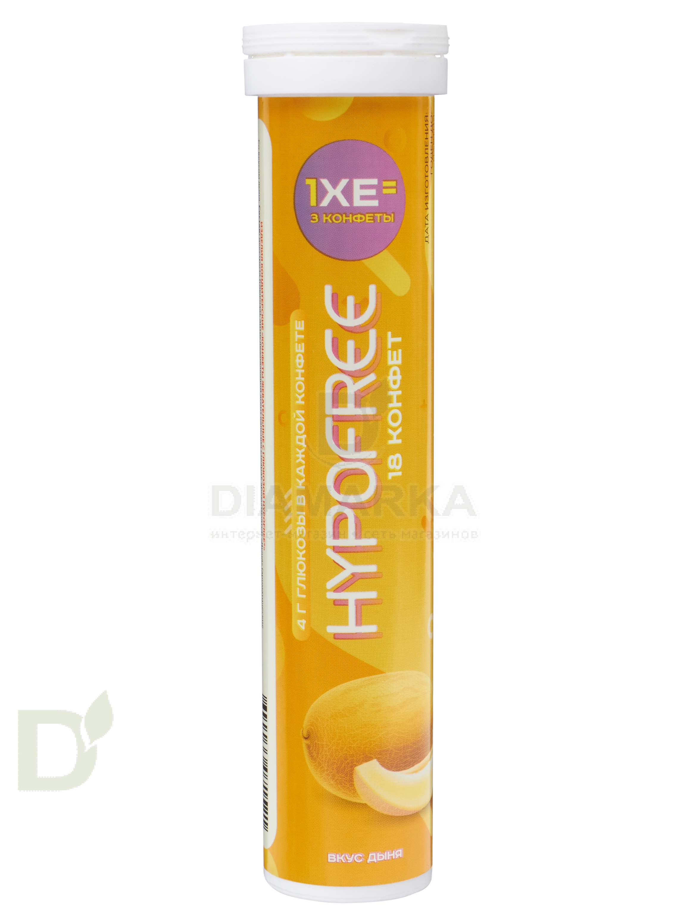 <h2><span style="color: #555555;">Гипофри - свобода от гипогликемии</span></h2> Когда нужно быстро и точно побороть гипогликемию, средства Гипофри работают как нельзя лучше! Благодаря декстрозе в составе они действуют моментально, а выверенная дозировка (гели по 0,5 и 1 ХЕ, напитки по 1 ХЕ, конфеты по 0,4 ХЕ) позволяет не переборщить с углеводами во время купирования, а значит сахар потом будет в пределах нормы.<br> <br> Теперь к конфетам со вкусом апельсина, вишни, клубники, капучино присоединились еще одни - со вкусом и ароматом сочной дыни!<br> <h2>Таблетки от гипогликемии Гипофри ДЫНЯ уже в ДиаМарке</h2> 1 конфета содержит ровно 4 грамма углеводов.<br> А 3 - полноценную хлебную единицу (ХЕ).<br> <h2>Преимущества таблетированных конфет Гипофри</h2> <ul> <li>Точность В каждой конфете содержится выверенное количество углеводов (4 грамма).</li> <li> Таблетки не нужно разгрызать, они быстро тают на языке, поэтому процесс усвоения глюкозы начинается уже в ротовой полости.</li> <li> Тубу с таблетками удобно брать с собой. В одной пачке 18 конфет и 6 хлебных единиц!</li> <li> Яркий и освежающий вкус летней дыни.</li> </ul>